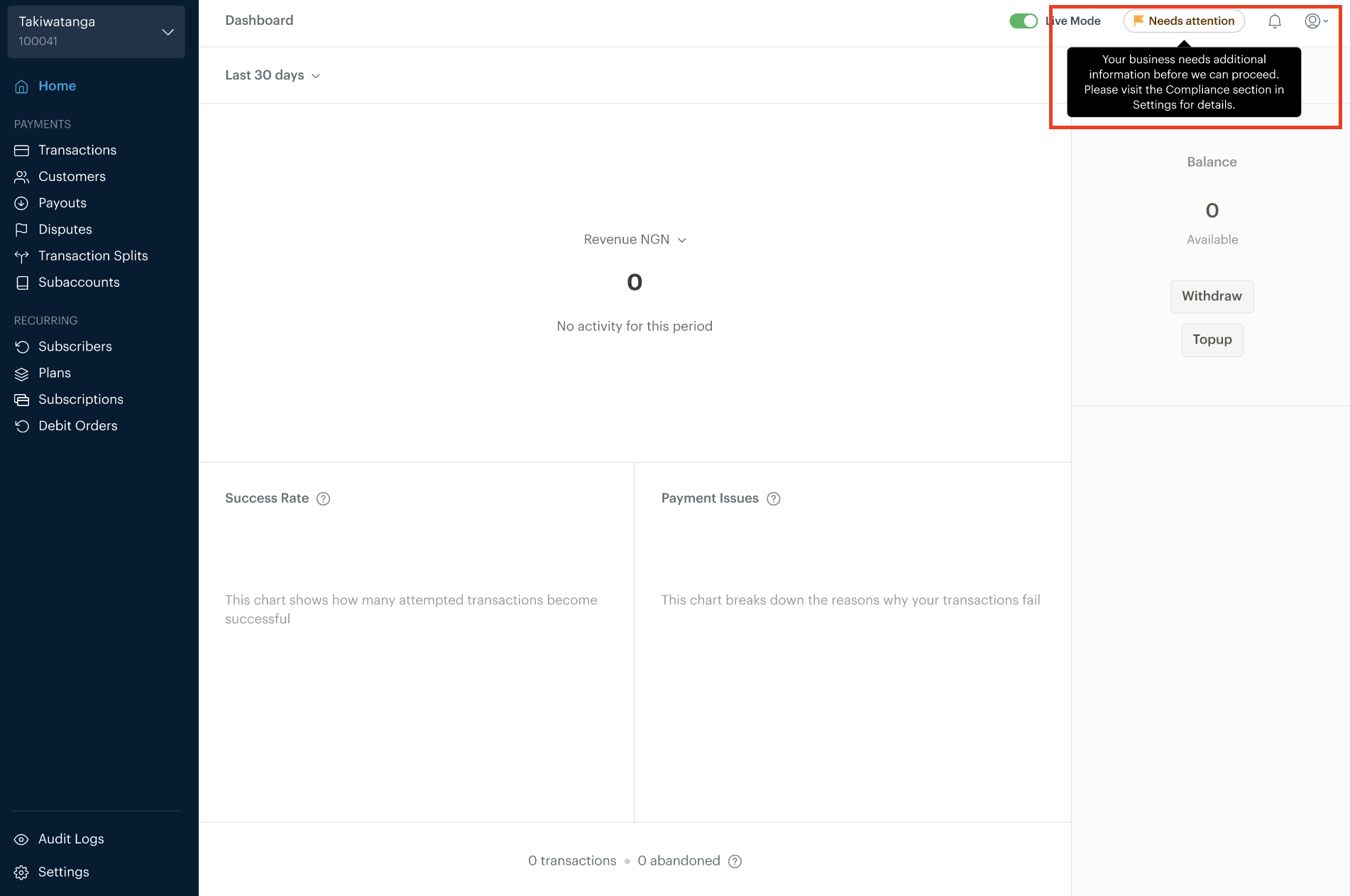 If you have questions about a request shown on your dashboard or need help updating your information, please reach out to our Compliance Reviews team at reviews@paystack.com.